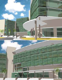 左图为艺术家概念中的SNS实验室/办公室大楼。该设施包括用户和工作人员办公室,以及实验室空间,突出中子科学联合研究所。