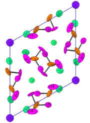 左图为利用中子散射数据从数据模拟方法预言的Ca-A沸石结构 (钙离子是兰色,硅是红色,铝是紫色,氧是绿色)。因为钙离子与氮和氧的亲和力不同,所以沸石增强了它们的分离。
