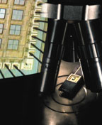 左图:散裂中子源能使科学家们研究用于蜂窝电话网络中超导微波器件使用的薄的膜片这样的小样品。