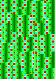 左图:中子散射看到的一种高温超导体的自旋量子域态模型和电荷图形。带颜色的框是自旋(红的在上,蓝的在下 - 大小代表有序矩的振幅)。瓦楞形的绿色代表电荷调制度。