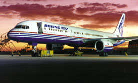 右图:波音757飞机是由重量轻的塑料制造的。中子研究可导致生产出更安全、更快和能效更高的飞机。