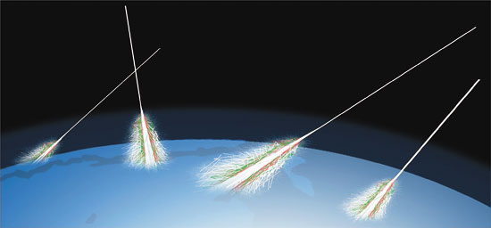进入地球大气层后的“宇宙线雨”示意图。中科院高能物理研究所供图