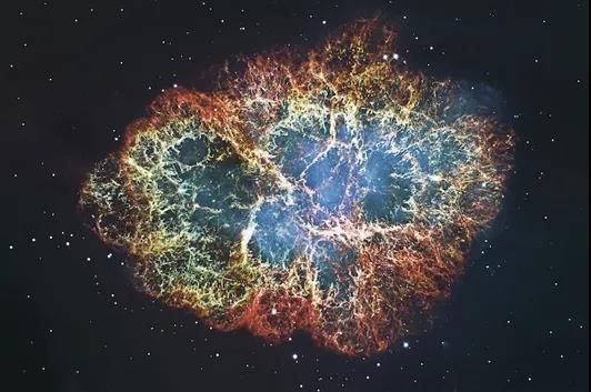 蟹状星云距离地球约6500光年,诞生于一次超新星爆发,我国宋朝时期(1054年)观测到了这次事件,这是现代天文学中第一个被证认的具有清晰历史观测记录的超新星遗迹。