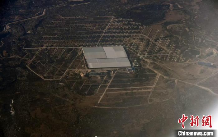 资料图:2019年4月,稻城飞往成都的航班上,航拍正在建设中的高海拔宇宙线观测站(LHAASO)。 中新社记者 孙自法 摄