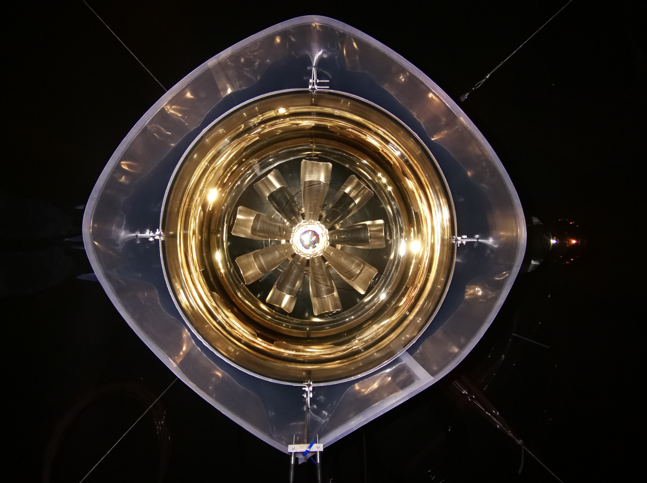 “大蓝箱子”内部装着很多精密的设备,其中最核心的设备是硅光电倍增管相机。最初研制人员想使用普通的光电倍增管,但其在较强的光线下使用会降低寿命甚至烧坏,使望远镜无法在白天和有月光的晚上开机。为了确保有足够长的探测时间,科研人员攻克了重重技术难关,使用硅光电倍增管替换了普通的光电倍增管。