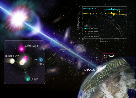 宇宙中的背景光并不一定像我们想象的那么‘厚’,光在宇宙中的速度并不是恒定在299,792.458千米/秒,它有可能更快,也有可能更慢。”近日,国家重大科技基础设施“高海拔宇宙线观测站(LHAASO)”(简称“拉索”)正式发布迄今最亮的伽马射线暴的高能伽马辐射精确能谱,该成果揭示出宇宙背景光在红外波段强度低于预期,同时也检验了爱因斯坦相对论的适用范围,相关研究成果于美国东部时间11月15日在《科学进展》上正式发表。