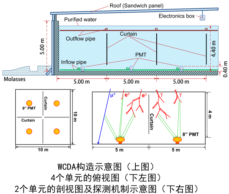 (2)建设以测量簇射粒子在水中产生的切伦科夫光为探测技术的78000m2探测器阵列的设计方案(WCDA)。