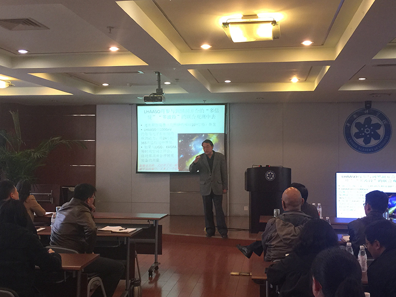 3月24日下午,高海拔宇宙线观测站项目首席科学家、项目经理曹臻研究员应邀出席中科院成都分院机关职工学习会,并作了“引力波及其突破性发现简介”的科普报告。