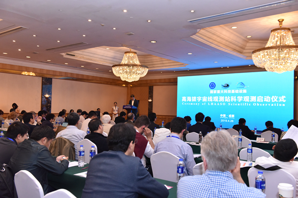 4月26日,高海拔宇宙线观测站(LHAASO)科学观测启动暨天府宇宙线研究中心成立揭牌仪式在成都举行。来自中、美、日、德、法、意、俄、瑞士等国家的专家学者等近百人参加仪式。