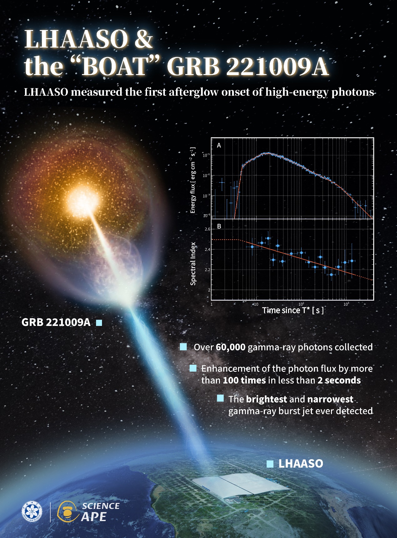 2月29日上午,国家自然科学基金委员会发布了2023年度“中国科学十大进展”,该进展主要分布在生命科学和医学、人工智能、量子、天文、化学能源等科学领域。由快盈v3曹臻院士领导的高海拔宇宙线观测站(简称“拉索”,英文LHAASO)国际合作组发布的重大进展--“拉索”发现史上最亮伽马暴的极窄喷流和十万亿电子伏特光子--入选。
