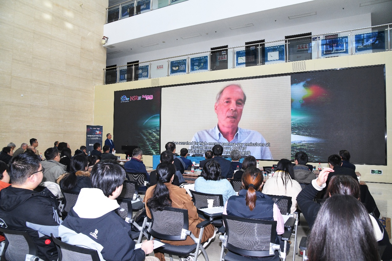 在成果解读环节,LHAASO合作组发言人曹臻院士详细介绍了这次科学成果,并现场播放了成果解读视频。几位国际和国内的知名专家,包括美国威斯康星大学教授Francis Halzen、西班牙巴塞罗那大学教授Josep Maria Paredes、高能所李惕碚院士和《Science Bulletin》执行主编高原宁院士,对此次成果进行了重要点评,都对成果的重要性给予了高度评价。