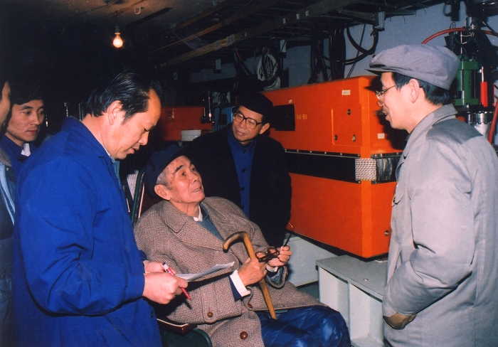 张文裕先生坐着轮椅到储存环隧道了解工程进展情况
