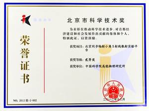 日前,北京市人民政府公布了获得2012年度北京市科学技术奖的项目,“北京同步辐射小角X射线散射实验平台”项目获北京市科学技术奖二等奖。