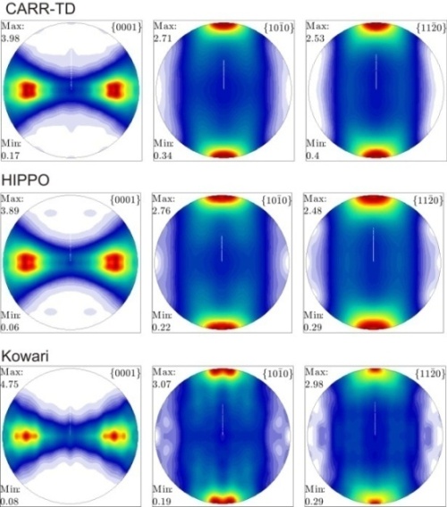 图1 国际上不同织构衍射仪测得的锆-4合金织构极图