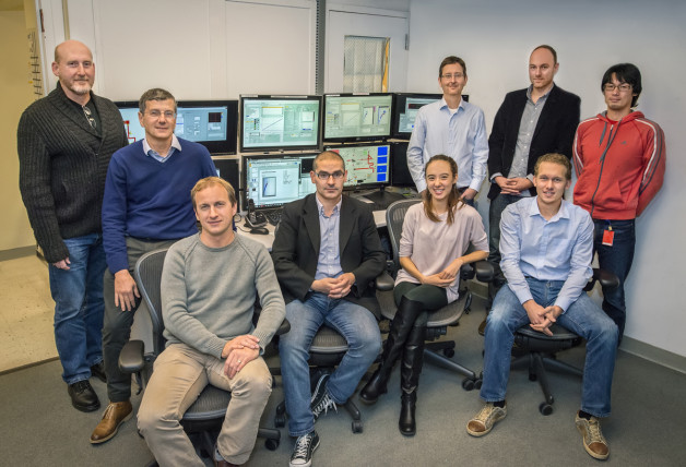 Members of the BELLA Center staging experiment team, from left, are Eric Esarey, Wim Leemans, Jeroen van Tilborg, Carlo Benedetti, Kelly Swanson, Anthony Gonsalves, Joost Daniels, Sven Steinke, and Kei Nakamura. Not pictured are Cameron Geddes, Carl Schroeder, Nicholas Matlis, and Brian Shaw. (Photo credit: Roy Kaltschmidt/Berkeley Lab)