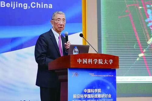 丁肇中在中科院前沿科学国际战略研讨会上作报告。王晓亮摄