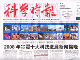 由552名中国科学院院士和中国工程院院士投票评选出的2008年中国、世界十大科技进展新闻1月18日揭晓。“北京正负电子对撞机重大改造工程建设任务圆满完成”入选中国十大科技进展新闻,位列第五。