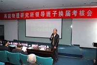 王庭大书记在会上发表讲话,他指出:第一点,参加高能所领导班子换届考核会是进行考核,进行学习。高能所是京区最大的研究所,也是全国、全世界知名的研究所,高能所为院争了光,为国家做出了贡献。胡锦涛总书记在两院院士大会上的讲话、在纪念中国科协成立50周年大会上的讲话中两次都提到了高能所,提到了北京正负电子对撞机。高能所在上海光源、大亚湾中微子、散裂中子源等等国家重大科学工程项目中做了大量的卓有成效的工作。本届班子在科研创新目标凝练、多出科技创新成果、体制机制改革、人才队伍建设、领导班子建设、党建工作、创新文化建设等方面卓有成效,出色地完成了任期的任务。他对本届班子和全所职工的辛劳表示慰问,对取得的成绩表示祝贺,也会将陈所长报告中反映的意见向党组汇报。