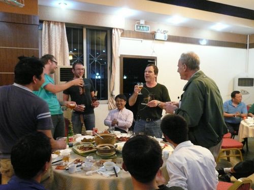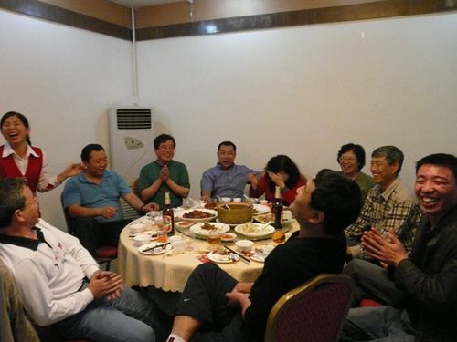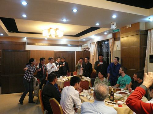 轻松欢快的新年聚餐在暖暖的祝福中拉开了帷幕,席间,大家把酒言欢、热闹非凡:Johny 用刚刚学会的几句中国话送上新年祝福,安装工人孟志勇也以流利的英文祝福大家新春快乐。随后,1号桌人员为大家献上一曲喜庆的《恭喜发财》,2号桌的4位美国小伙子给大家带来了西部牛仔风情的《啤酒歌》,3号桌也不甘示弱,一曲《数鸭子》把大家带回到无忧无虑的童年。一周的忙碌与疲惫在愉快的聚会中消散的无影无踪,每个人又都重新焕发了抖擞飞扬的神采……