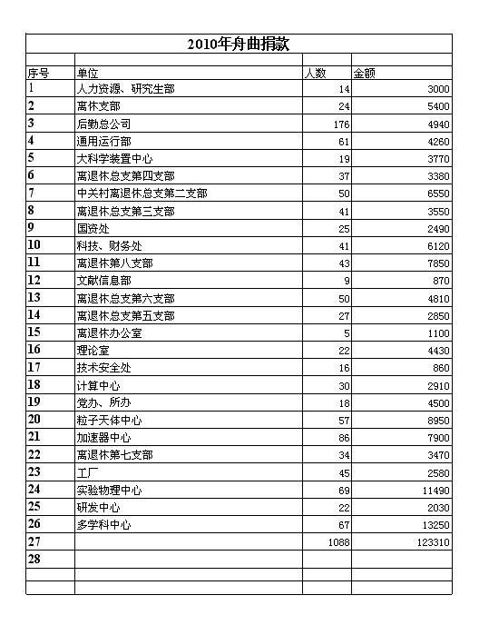 附:各部门捐款一览表