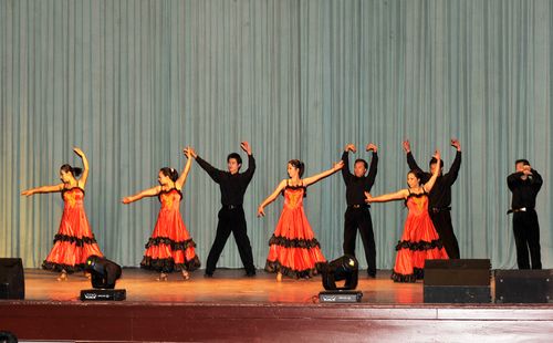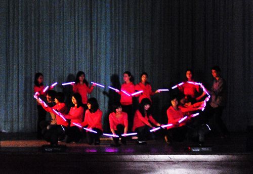 随后,由朱威、江亚欧、王湘鉴、张敏主持的文艺演出正式开始。这次以舞蹈、小合唱、独唱、相声、诗歌表演等形式的节目,短小精悍但异常精彩。在舞蹈中,不仅有每年都出现的民族舞,还有激情绚丽的现代舞,热情似火的西班牙斗牛舞;歌唱类表演不仅有深情动人的个人独唱,还有形式活泼,俏皮动感的表演唱;诗歌表演也第一次出现了方言朗诵。在不到一个半小时的时间内给观众带来了一次美好的视听享受。