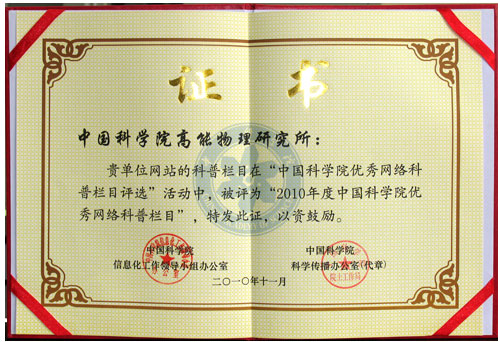 高能所网站科普栏目被评为“2010年度中国科学院优秀网络科普栏目”