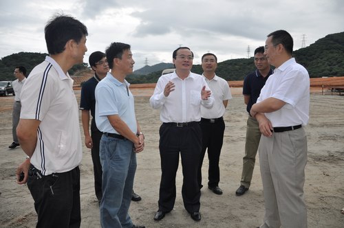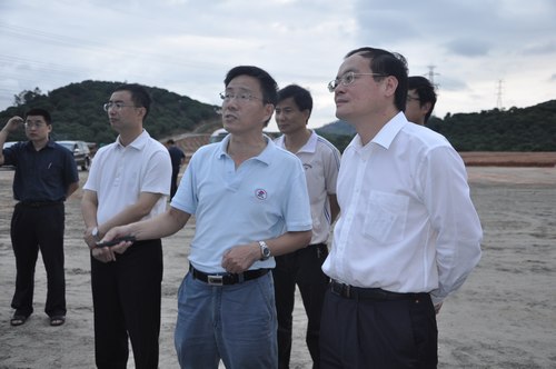10月13日下午,东莞市委副书记、代理市长袁宝成一行冒雨来到散裂中子源建设现场,对散裂中子源项目建设基地进行调研,这是袁宝成市长履新后的首次调研活动。