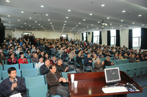 詹文龙代表院党组为离任的陈和生所长颁发了荣誉证书并在会上作了重要讲话。他首先对陈和生在任期间对高能所及中科院创新事业做出的重要贡献表示感谢。他充分肯定了陈和生带领高能所在大科学装置建设、基础领域的发展、加速器技术的研发及多学科交叉等领域取得的优异成绩。他指出,陈和生本人具有较高的学术水平,作风严谨,求稳务实,他优秀的领导能力和个人魅力使得高能所在“创新2020”方案制定、“十二五”规划和院先导项目方案布局等方面呈现出良好的发展态势。同时,詹文龙代表院党组向新任所长王贻芳表示祝贺并殷切希望新任所长做好角色转换,从德、能、勤、绩、廉等方面严格要求自己,带领高能所全体职工开拓创新,实现跨越式发展。詹文龙对高能所的发展也提出了四点希望:一是希望高能所在“十二五”规划的指引下,按照“一三五”发展规划的要求,做好战略布局,有所为有所不为,多出原创性成果;二是加强领导班子自身的建设,团结协力,创新进取,建立和健全后备干部培养及成长机制;三是希望高能所注重人才队伍建设,不断探索高层次人才的引进及培养机制;四是希望高能所在新任所长及领导班子带领下,取得更大的成绩。