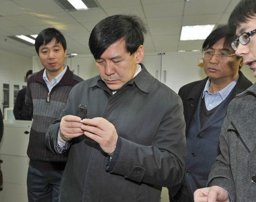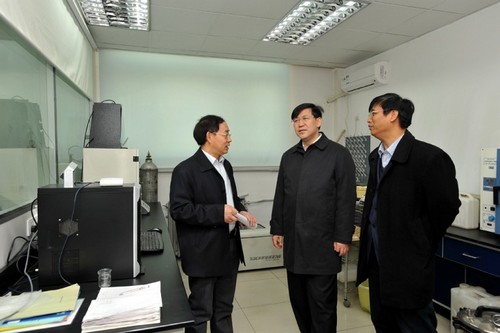 在高能所党委书记兼副所长王焕玉等领导的陪同下,阴和俊首先参观了粒子天体物理院重点实验室、核分析技术院重点实验室、北京市射线成像技术与装备工程中心、纳米生物效应与安全院重点实验室与核探测与核电子学国家重点实验室,认真听取了科研人员的汇报,详细了解了实验室的科研进展、成果以及产业化前景。