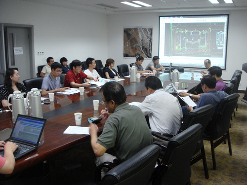 设计院首先详细介绍了大楼的设计思路及设计方案,考虑到冷冻站在原址重建等因素,大楼设计为南侧9层北侧12层中间以5层裙楼连接的建筑风格。之后就设计中遇到的电气、水暖、冷冻等各专业问题与用户、行政管理处、计算中心、通用运行室等相关部门进行了深入探讨。设计院在满足用户使用及管理要求并满足国家设计规范的基础上,给出了问题的初步解决方案,为后续设计工作的顺利进行奠定了基础。