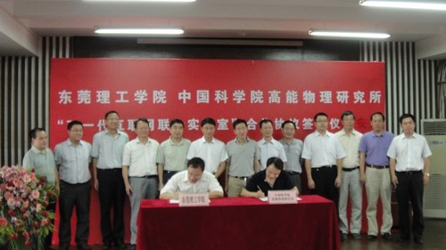 8月30日,中科院高能所与东莞理工学院“下一代互联网联合实验室”合作协议在东莞理工学院签订,高能所王贻芳所长与东莞理工学院杨晓西校长代表双方单位在合作协议上签字,东莞理工学院党委书记成洪波出席了签字仪式。