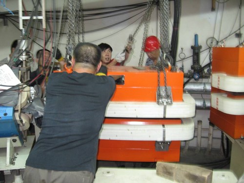 今年夏季检修涉及工艺设备安装方面任务虽不如去年重,但停机时间短,要按时完成任务并不轻松,安装维修组人员根据今年任务杂、头绪多的特点,事前进行了人力、物力资源的合理安排,完成了北京谱仪检修配合、直线加速器BI磁铁和真空盒以及束流挡块、微波14台干负载、真空系统22台离子泵、K-6波导耦合器、K-16直波导等设备拆换,储存环备用高频腔及超导耦合窗移位,两套激光测量平台运输并安装就位,直线隧道污水泵拆换,冷却塔布水器解体维修等诸多工作。各项工作井井有条,达到预期目标。