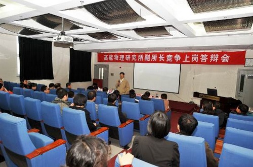 11月12日,高能所副所长岗位竞争上岗公开答辩评审会圆满举行。评审会由中科院副院长詹文龙主持,院人教局局长李和风、基础局副局长黄敏、北京分院党组常务副书记、副院长马扬,高能所所长王贻芳、党委书记王焕玉、陈和生院士担任评审委员会委员。院人教局领导干部处处长董伟锋、北京分院干部工作处处长李浩然等,高能所所领导姜晓明、潘卫民、罗小安,所长助理马力、秦庆及干部职工50余人参加了会议。