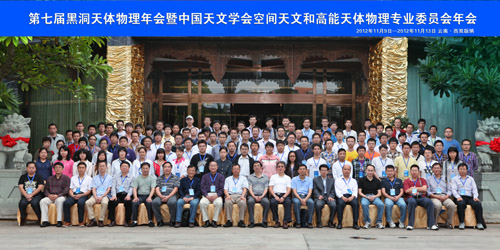 11月9至14日,第七届黑洞天体物理年会暨中国天文学会空间天文和高能天体物理专业委员会在云南省西双版纳召开。会议由973项目“黑洞以及其它致密天体物理的研究”、中国天文学会空间天文和高能天体物理专业委员会、南京大学天文与空间科学学院联合主办,由中国科学院云南天文台承办。我国天文界专家学者近150人参加会议。科技部973项目专家咨询组成员黄珹研究员、国家自然科学基金委董国轩研究员和刘庆忠研究员作为特邀专家和领导出席会议,