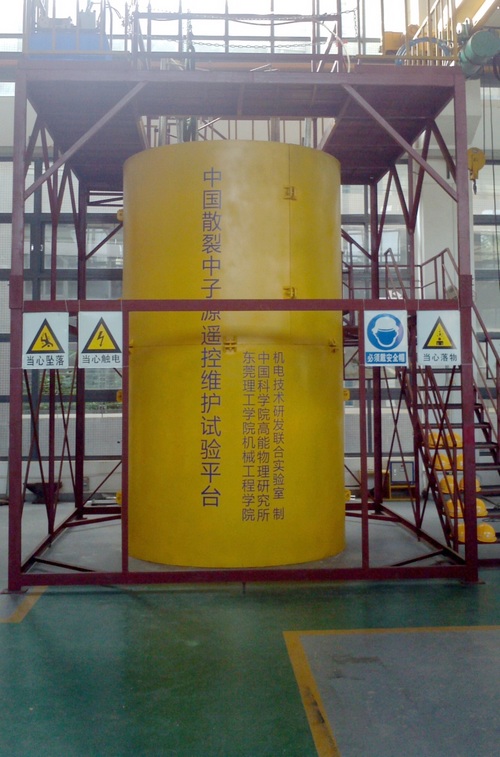 2010年12月成立的“中国散裂中子源机电技术研发联合实验室”,立足CSNS项目中靶站系统的建设。在双方科研人员的努力下,该实验室工作取得阶段性成果。慢化器及反射体平台氦容器环境模拟平台完成安装。平台的建立,不但为结构设计提供验证和优化,也为后期操作积累实践经验。通过遥控维护平台的搭建及相关遥控维护实验的开展,工程技术人员还将完善靶体维护工艺,慢化器及反射体拆卸工艺,质子束窗维护关键工艺,完成专用设备的开发及相关工艺流程完善,掌握系统的遥控维护关键技术,为CSNS关键部件的的设计、制造、运行维护提供第一手的资料和实践经验。