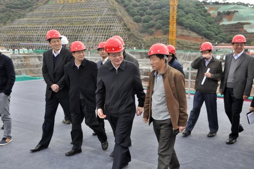 袁宝成察看了工地建设情况后,表示这是自己第四次来到工程现场,每次都看到很大的变化;并表示东莞市政府将继续大力支持散裂中子源项目的建设,特别要做好东莞市代建的土建工程;同时希望高能所能按期完成工程建设任务,配合地方政府利用散裂中子源做好相关的转型升级和产业化工作。