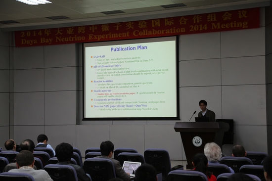 大亚湾实验国际合作组发言人曹俊研究员、陆锦标教授主持了会议,在持续4天的会期内,相继开展了实验运行状况、物理分析进展等专项研讨会和合作组全体会议。11日上午,合作组会在曹俊关于2014年文章发表计划的报告中顺利落下帷幕,经过四天的讨论,会议取得了预期的成果并商定下次合作组会于2014年5月在北京举行。