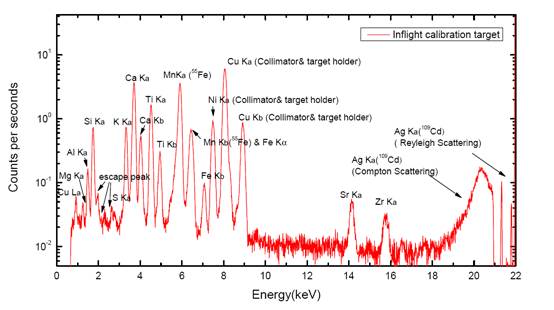 图1 第二月昼APXS在轨标定能谱