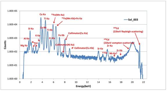 图2 第二月昼APXS对车辙月壤的探测能谱