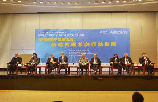 论坛由菲尔兹奖获得者、清华大学教授丘成桐主持。诺贝尔物理奖获得者David Gross、诺贝尔物理奖获得者Gerardt Hooft、菲尔兹奖和基础物理学奖获得者Edward Witten、基础物理学奖获得者Nima Arkani-Hamed、基础物理学奖获得者Joseph Incandela、狄拉克奖和樱井奖获得者Luciano Maiani、日本东京大学卡弗里宇宙物理学与数学研究所所长Hitoshi Murayama、潘诺夫斯基实验粒子物理学奖获得者王贻芳等八位世界一流的物理学家作为嘉宾参加论坛,谈了对基础物理学的未来发展的看法。