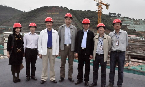陈和生首先感谢了两位“父母官”对散裂中子源项目的支持,项目在论证、地质勘探、前期立项阶段,时任大朗镇党委书记的尹景辉给予了极大的支持与配合。再次来到建设现场,陈和生与他们一起回顾了散裂中子源从选址到立项的过程,先后参观了正在施工的环设备楼、靶站谱仪大厅,向他们简要介绍了装置原理和进展情况。