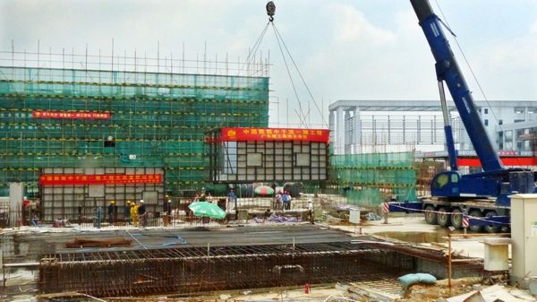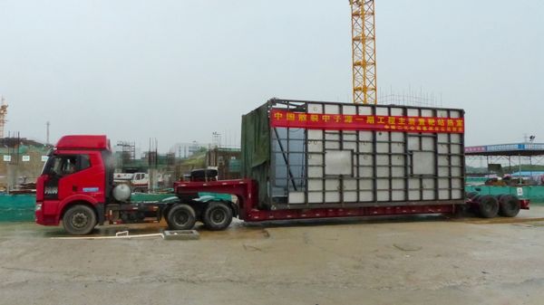壳体单段属于超高超宽的超大型设备,同时散裂中子源工地吊装环境复杂,协作单位众多。为确保热室壳体运输及吊装顺利进行,实验分总体、工程办、园区办、建造单位中核二三公司惠州分公司以及广东建工集团等相关单位联合开展多次吊运方案的讨论,并由工程办组织对运输路线进行了详细勘察和工地现场协调。