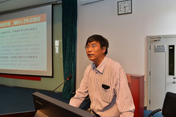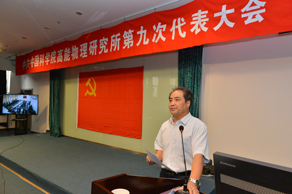 所长王贻芳以“落实‘率先行动’计划 建设国际一流研究机构”为题发表讲话。他全面介绍了中科院的“率先行动”计划及改革举措,对高能所的未来发展提出了设想,并对全所党员的辛勤付出表示感谢。