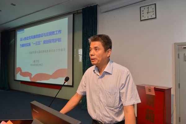 潘卫民代表纪委作工作报告。报告从贯彻落实《工作规划》、坚持不懈抓好常规工作、拓宽思路开展创新工作三个部分,简明扼要的总结了所纪委五年来的工作,并就进一步加强和推进党风廉政建设畅谈了工作体会,对未来的工作提出了宝贵意见。