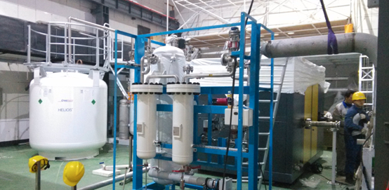 超导加速器技术已经成为当代和未来加速器的主流,也是高能所发展的战略重点之一。超导高频腔研究和测试技术是超导加速器技术的核心技术,先进的低温系统是超导技术发展的基础。在2012年、2013年修购专项资金资助下,“超导高频腔研究和测试平台”项目购置了一套低温系统主机, 可实现制冷能力1020W@4.5K,液化率322 L/h,氦工质流量约 110 g/s。此设备可满足1.3 GHz多cell超导腔、BEPCII备用腔、ADS质子超导腔等多种超导腔的低温需求,支持国际直线对撞机、ADS、 XFEL、ERL、质子重离子加速器以及未来CEPC/SppC等超导加速器研制,以及我所锐新公司1.3GHz Tesla型超导腔研制与高梯度超导磁体研制等。