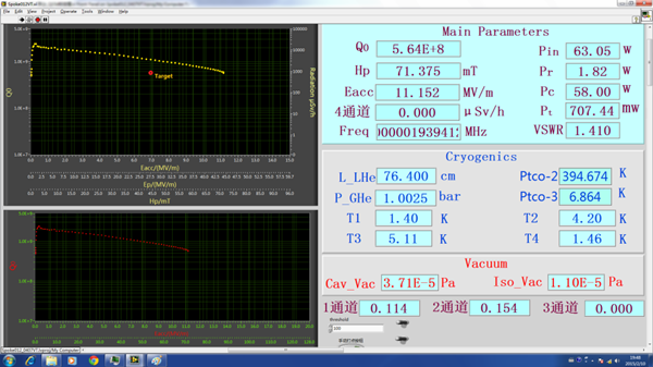 在与ADS超导腔课题组紧密合作的基础上,由所实验工厂承担ADS Spoke024超导腔于2015年2月10日完成了初步垂直测试,在4K温度下,加速梯度达到11.1MV/M,Q0为5.64×108,测试结果优于设计指标/验收指标(7MV/m,Q0>5×108)。