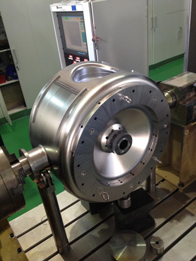 在超导腔设计阶段,工厂技术人员提出了相关工艺方案和技术路线,获得课题组的采纳。在加工阶段,工厂成立了专项技术攻关小组,在ADS课题组人员帮助和指导下,逐一攻克了“冲压成形”、“机加工”、“电子束焊接”等主要工序中的难点,掌握了“焊接精确定位”、“无飞溅焊接”和“焊接背成型”等关键技术。