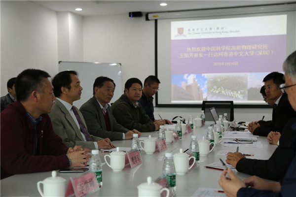 2月10日下午,高能所所长王贻芳、副所长兼东莞分部主任陈元柏等一行6人前往香港中文大学(深圳)签订战略合作协议,并举行了座谈会。