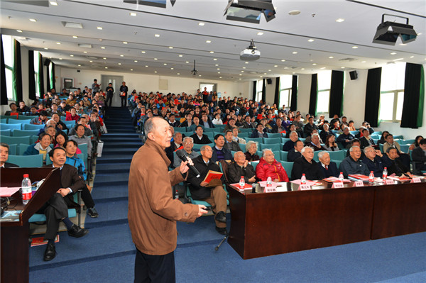 报告会上,高能所郑志鹏研究员、中国高等科技中心王垂林研究员、高能所民盟支部代表卢红研究员分别以报告的形式,从不同角度介绍了叶铭汉先生求学、治学、教学的人生历程。叶铭汉先生的同事、好友、学生也纷纷发言,以亲身经历向与会者展示了叶先生实事求是的学者本色和甘为人梯的奉献精神。高能所民盟支部、高能所朱永生研究员、美国费米实验室吴为民研究员分别为叶铭汉先生献上贺联、题字和照片。