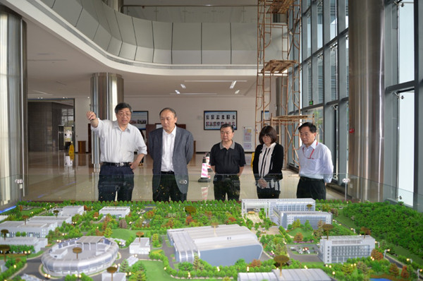 杨卫一行首先参观了中国散裂中子源工程沙盘。陈和生为来宾们介绍了散裂工程的概况和工程进展情况。随后,来宾们在陈和生等的陪同下,参观了2#测试厅、靶站、直线隧道和环隧道,现场了解了散裂工程的建设情况。